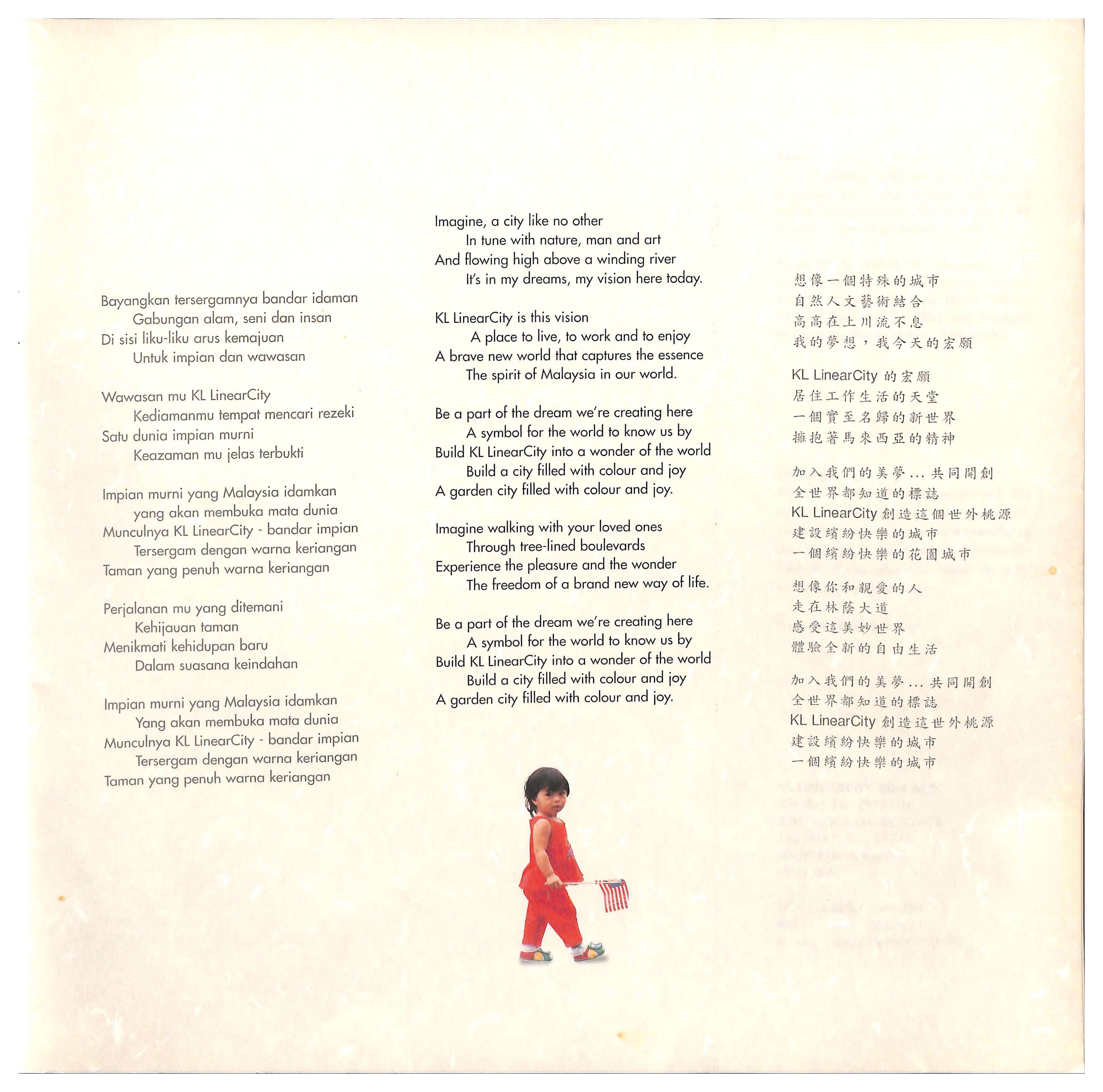 The formal inspiration for this essay. KL LinearCity, KL LinearCity: Your Global Address in Asia, (Kuala Lumpur: KL LinearCity, 1996), 1. Hereafter "KL LinearCity 1996."